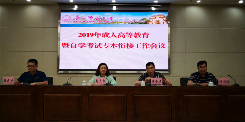 4月27日,廣西師范大學2019年成人高等教育暨自學考試專本銜接工作會議在北海順利召開,此次會議由廣西師范大學繼續(xù)教育學院主辦,育才教育函授站承辦,廣西師范大學繼續(xù)教育學院院長劉玉紅、副院長蔣冬清、陳建光、何創(chuàng)雄以及各函授站(教學點)負責人參加了會議,我函授站站長蔣華參加了會議。