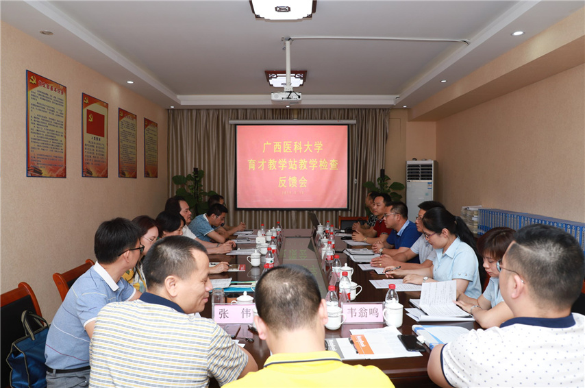 5月18日上午,廣西醫(yī)科大學(xué)繼續(xù)教育教學(xué)檢查組蒞臨柳州育才教學(xué)站進行教學(xué)檢查。廣西醫(yī)科大學(xué)李郁風(fēng)處長、繼續(xù)教育學(xué)院院長、主任醫(yī)師趙邦教授、副院長李春燕、教務(wù)科科長馮政毅等學(xué)校、學(xué)院領(lǐng)導(dǎo)和部門負責(zé)人參加了教學(xué)檢查,育才教學(xué)站負責(zé)人蔣華向檢查組匯報了教學(xué)站的招生、教學(xué)管理等情況。
