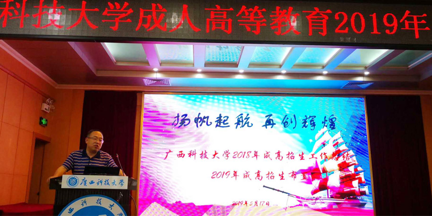 5月17日,廣西科技大學(xué)成人高等教育2019年函授站工作會(huì)議在桂林勝利召開,廣西科技大學(xué)繼續(xù)教育學(xué)院院長韋鴻鵬、副院長楊勝、學(xué)歷教育科科長吳衛(wèi)龍、學(xué)歷科各管理崗位老師以及各函授站教學(xué)點(diǎn)老師參加了會(huì)議,我函授站站長蔣華和副站長王志男參加了會(huì)議。