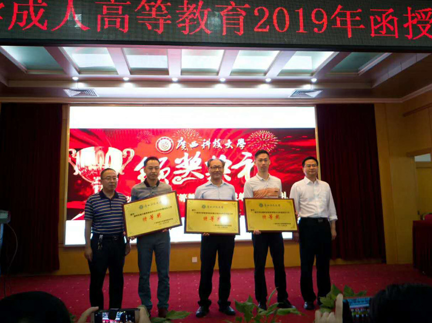 育才函授站因工作出色,榮獲廣西科技大學(xué)“2018年度招生工作特等獎(jiǎng)”、“2018年教學(xué)教務(wù)管理工作先進(jìn)單位”,陶長華、謝愛華、鄭昭珍、李祥偉榮獲“招生工作先進(jìn)個(gè)人”稱號,李彩梅、吳師娜榮獲“教學(xué)教務(wù)管理先進(jìn)個(gè)人”稱號。函授站負(fù)責(zé)人蔣華在會(huì)上作了《不忘教育本真初心、牢記人才培養(yǎng)使命》的教學(xué)管理經(jīng)驗(yàn)分享。