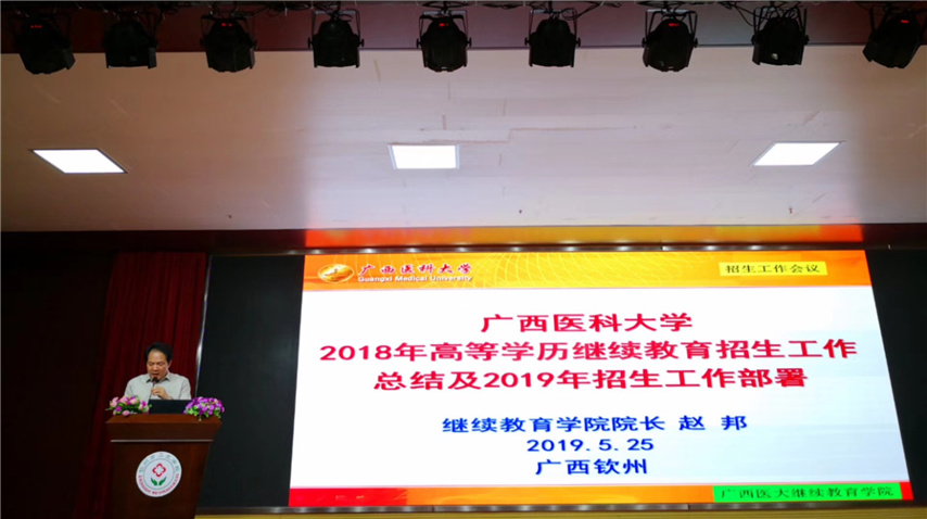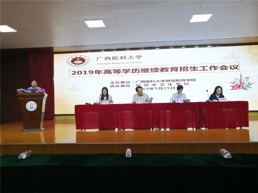 5月25日,廣西醫(yī)科大學2018年高等學歷繼續(xù)教育招生工作總結及2019年招生工作部署會議在欽州市衛(wèi)生學校隆重舉行,廣西醫(yī)科大學繼續(xù)教育學院院長趙邦教授、副院長劉慶委、李春燕以及各市衛(wèi)校、合作醫(yī)院教學站負責人和老師70多人參加了會議,會議由劉慶委副院長主持。