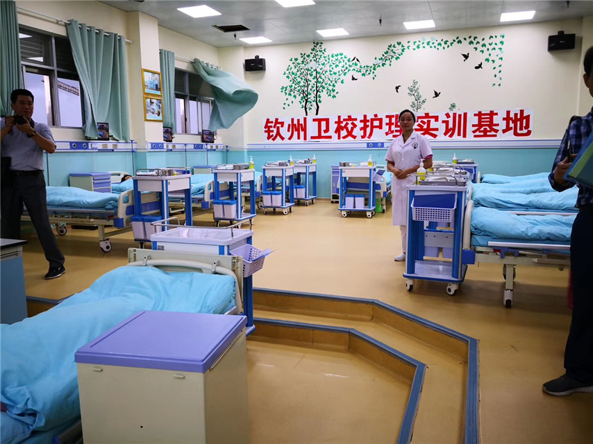 ▲參觀欽州市衛(wèi)生學校教學實訓場所