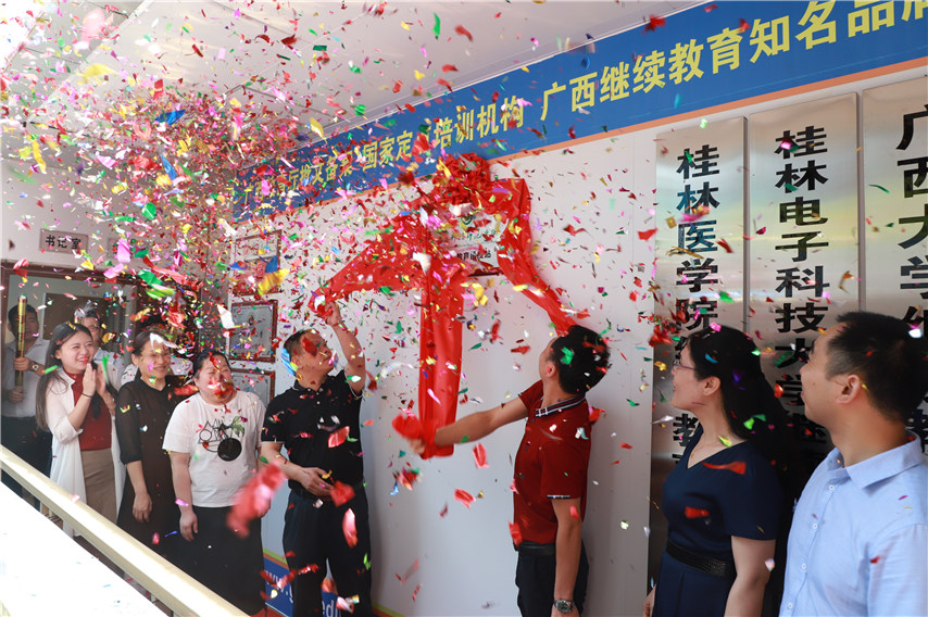 ▲廣西科技師范學(xué)院育才教育函授站揭牌儀式