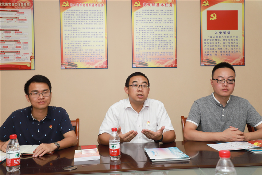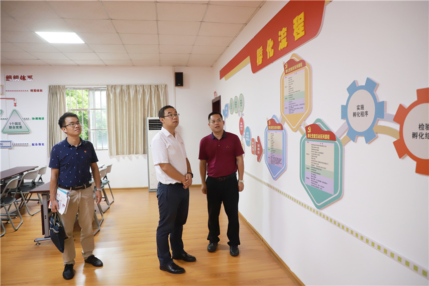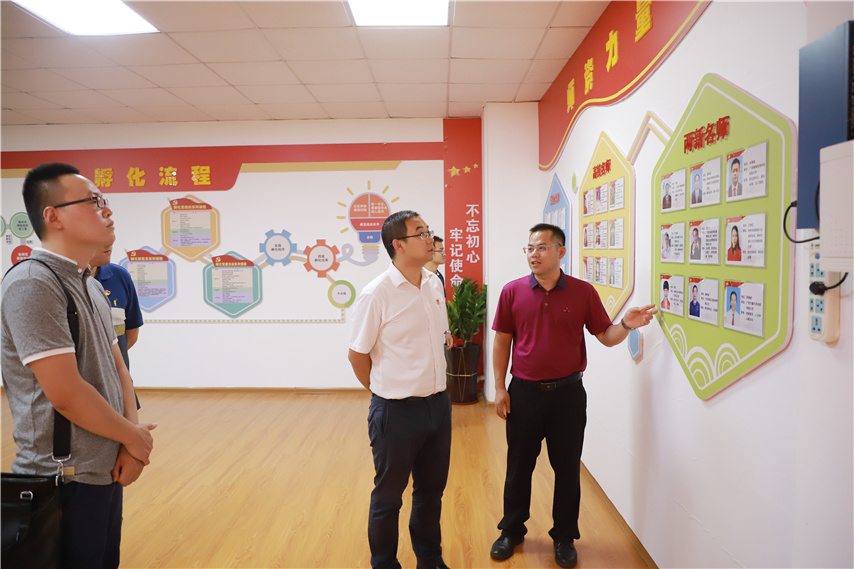 ▲團市委副書記張揚(中)、團市委組織部副部長華海濤(左一)參觀黨建孵化站建設(shè)