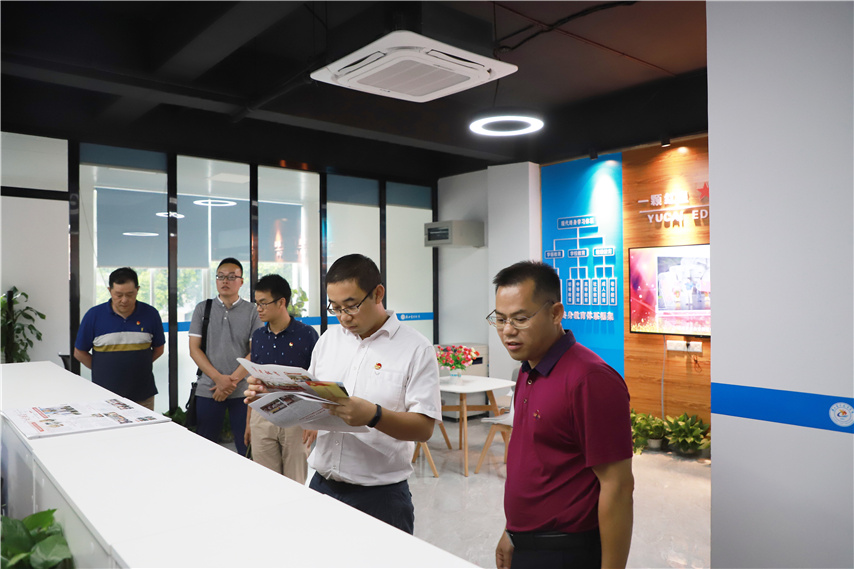 ▲團市委副書記張揚(右二)參觀黨建孵化站建設(shè)