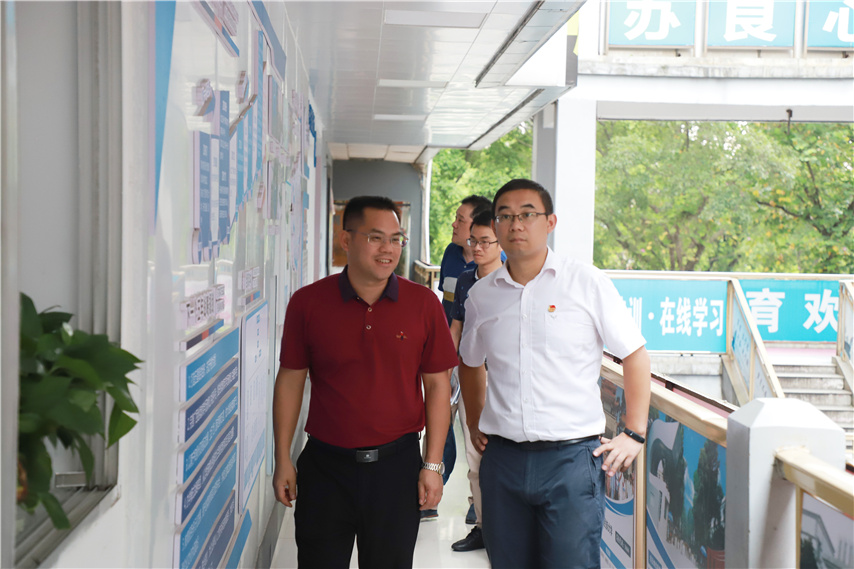 ▲團市委副書記張揚(右一)參觀育才辦學(xué)環(huán)境