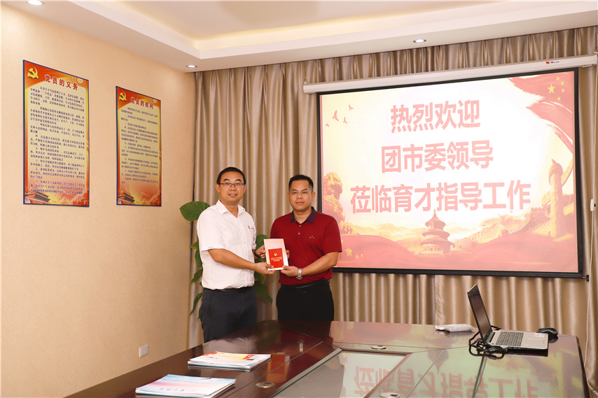 7月4日下午,中國共產(chǎn)主義青年團柳州市委員會副書記張揚、共青團柳州市委組織部副部長華海濤、柳州市青年企業(yè)家協(xié)會秘書陳登威一行蒞臨育才指導(dǎo)工作。