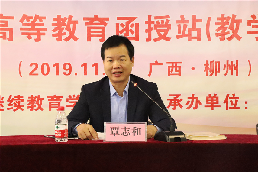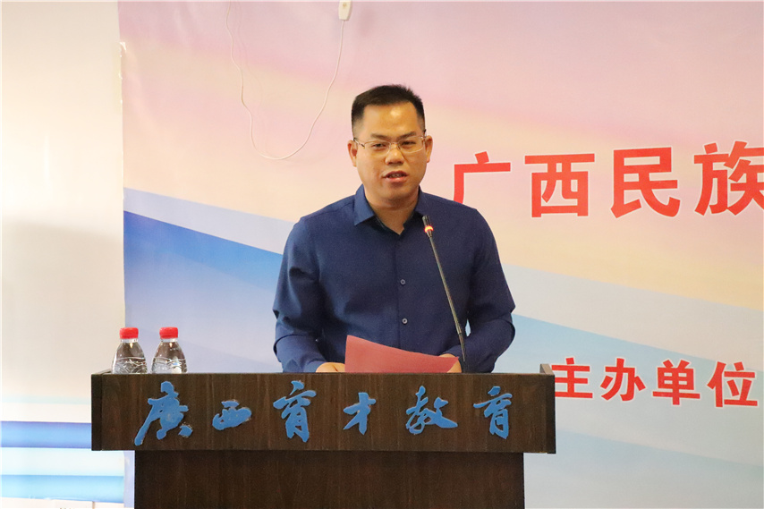 ▲廣西民族大學(xué)繼續(xù)教育學(xué)院黨總支書記、院長覃志和講話