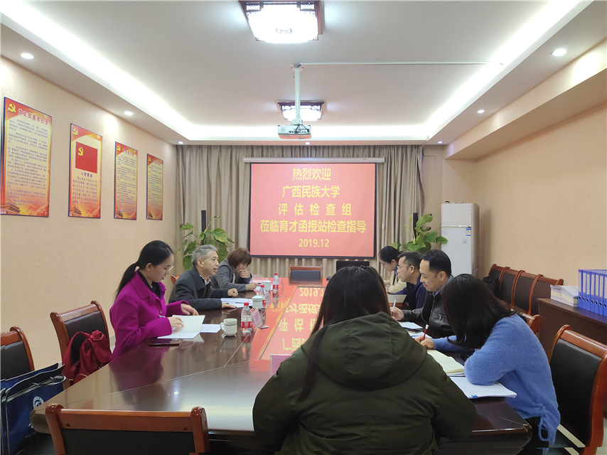 12月12日,廣西民族大學(xué)繼續(xù)教育評估檢查組組長李華明書記、副院長唐曉華一行三人蒞臨育才柳州本部進行教學(xué)評估檢查,集團聯(lián)合黨委書記、函授站站長蔣華,聯(lián)合黨委副書記、副校長王志男,聯(lián)合黨委紀檢委員、副校長李彩梅參加了匯報會。