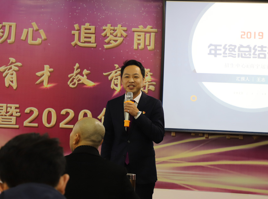 ▲集團聯(lián)合黨委副書記、副總經(jīng)理、副校長王志作招生中心和南寧運營中心述職報告