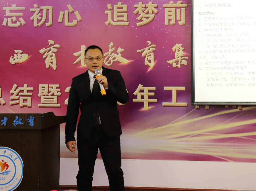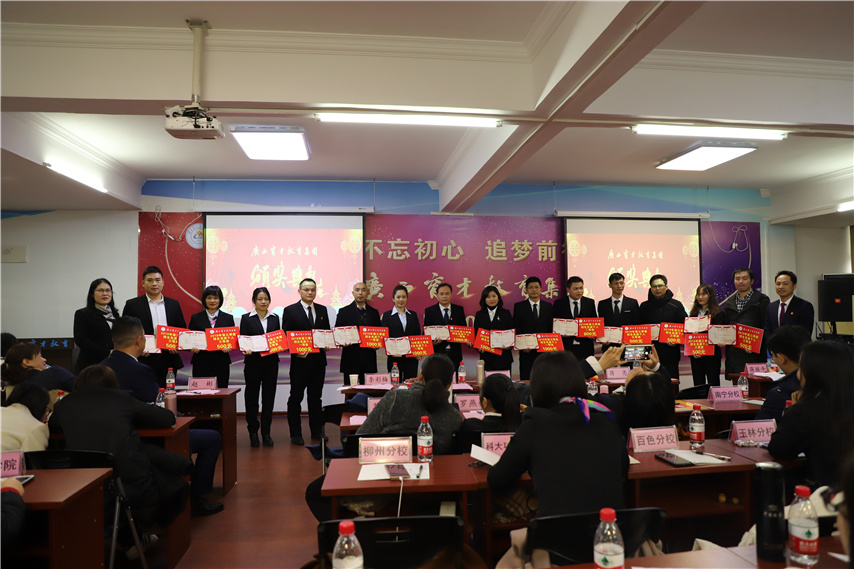 1月18日,集團2019年年終工作總結(jié)暨2020年工作部署大會在柳州本部隆重舉行。集團聯(lián)合黨委書記、董事長、總經(jīng)理、培訓學院院長蔣華、集團總校校長梁國坤、集團聯(lián)合黨委副書記、副總經(jīng)理、副校長王志、集團聯(lián)合黨委紀檢委員、副總經(jīng)理、副校長李彩梅、集團聯(lián)合黨委委員、副總經(jīng)理、副校長蔣亮、集團聯(lián)合黨委宣傳委員、副總經(jīng)理、副校長王麗、集團聯(lián)合黨委委員、培訓學院副院長趙彬等黨政領導班子成員及全體教職工參加了大會。