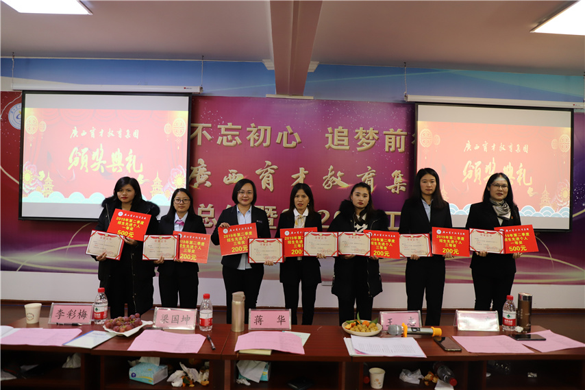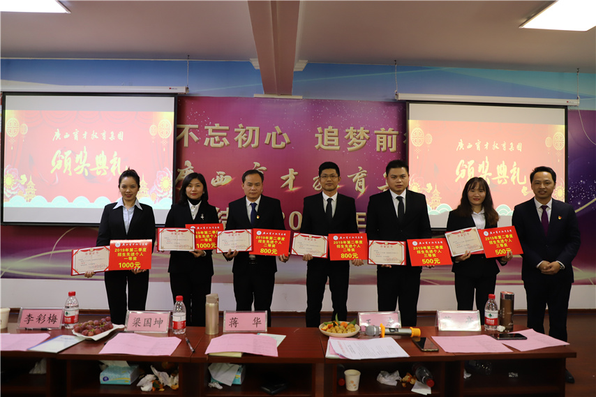 會議第二階段,對集團第二季度、第三季度招生先進集體、招生先進個人進行了表彰,并頒發(fā)榮譽證書、獎金以示鼓勵。