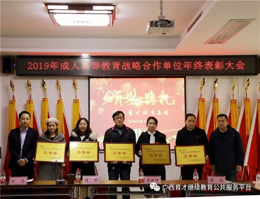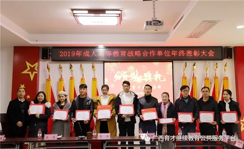 1月17日,集團(tuán)2019年成人高等教育戰(zhàn)略合作單位年終表彰大會在柳州本部順利舉行,會上對獲得招生先進(jìn)集體和招生先進(jìn)個人的戰(zhàn)略合作單位進(jìn)行了表彰,并頒發(fā)榮譽(yù)證書、獎金以示鼓勵。