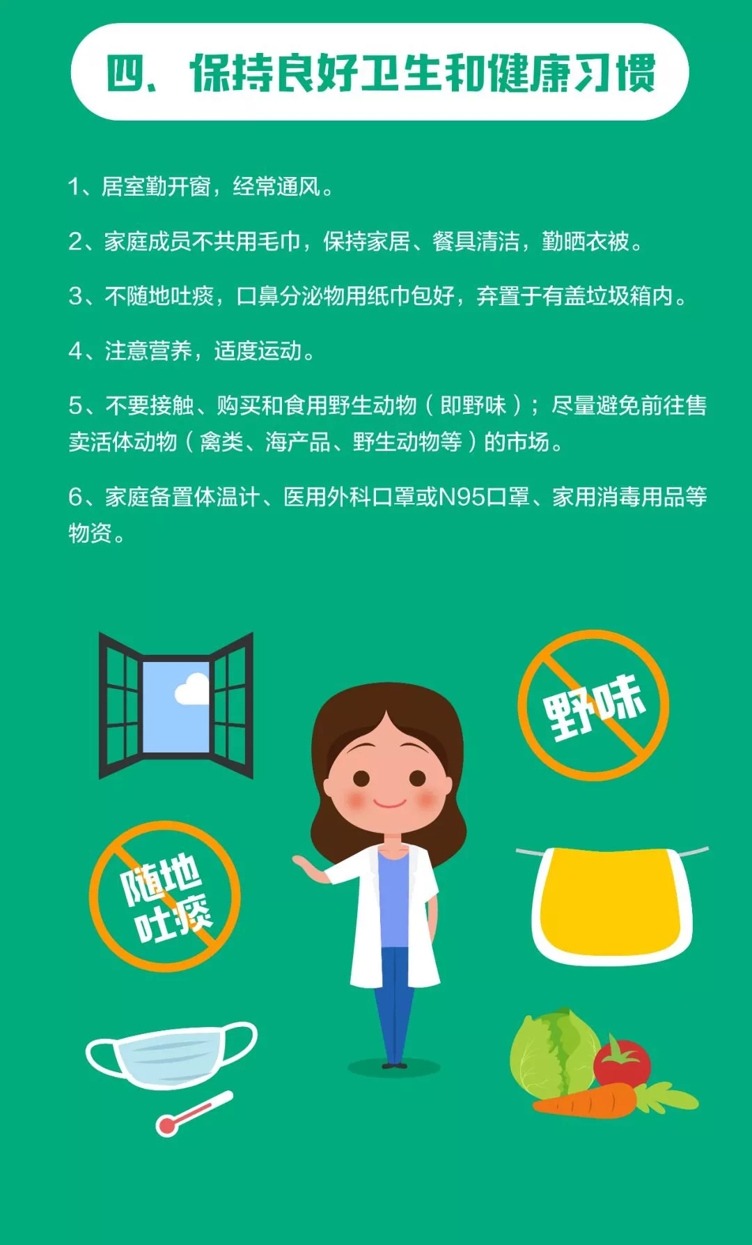 四、加強個人防護,避免與呼吸道癥狀患者密切接觸,一旦發(fā)現(xiàn)有咳嗽、打噴嚏等感冒癥狀的人,要盡快遠離;避免接觸或者宰殺野生動物、禽類動物,拒吃野味。