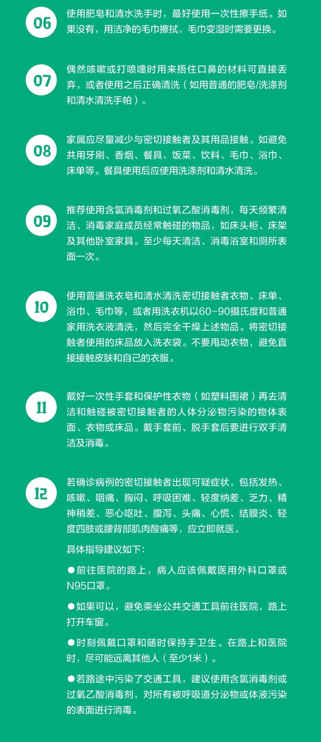 六、如果您來自疫區(qū),曾到過武漢,或接觸過從武漢回來者,請主動居家隔離14天(新型冠狀病毒感染的肺炎潛伏期為14天),14天內不要與外人接觸,持續(xù)觀察自己的健康狀況,做好其他家庭成員的防護。