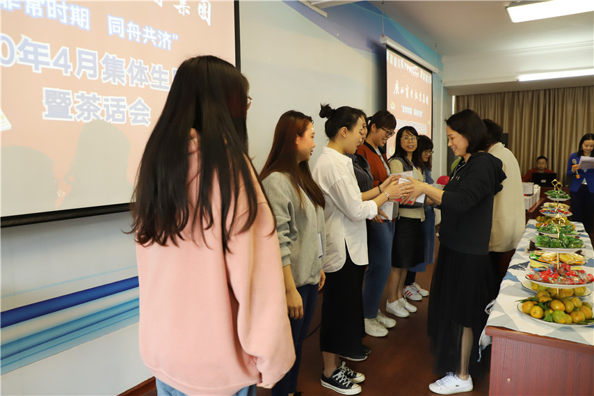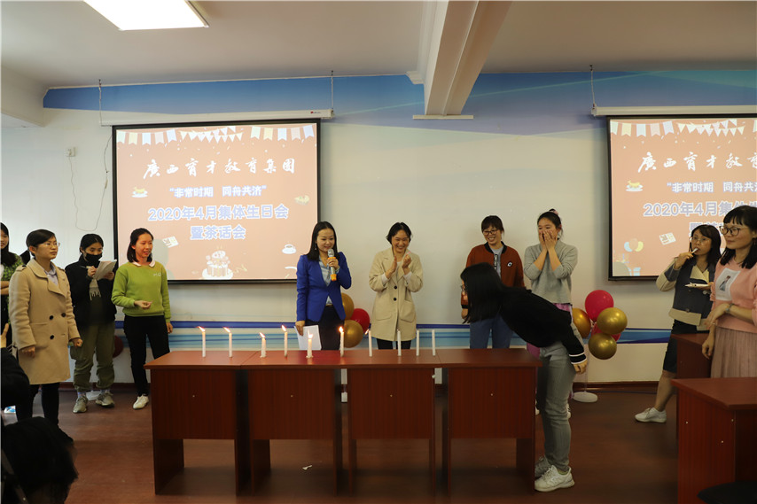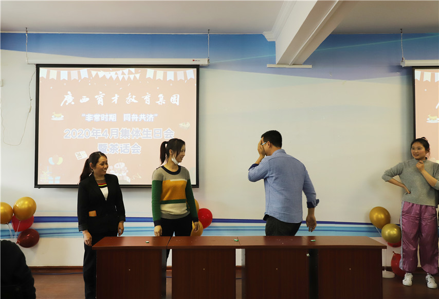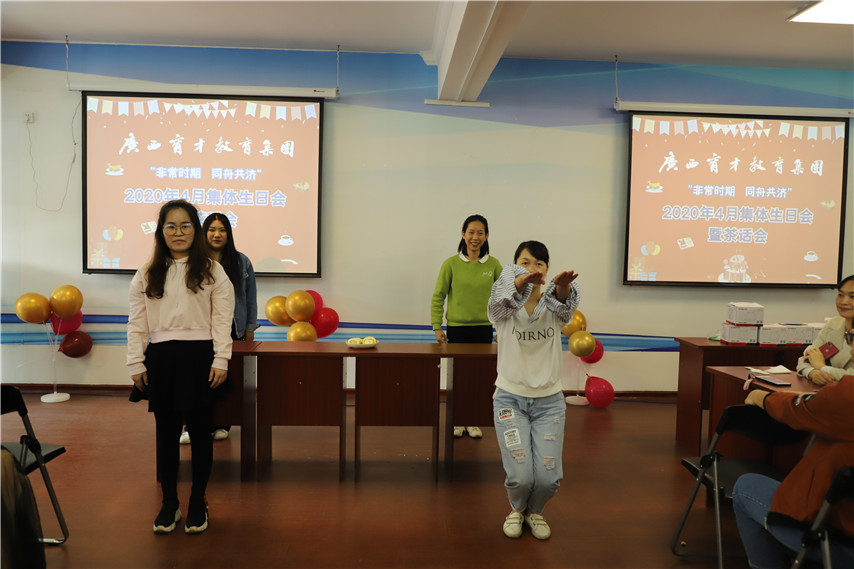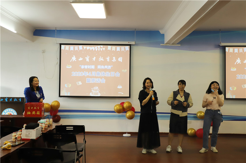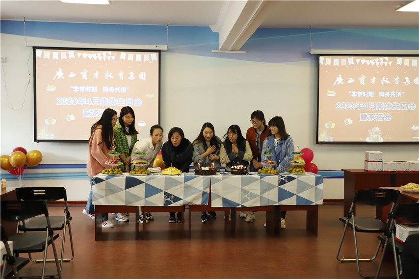 在新冠肆虐的非常時期,隨著疫情的逐漸緩解,4月27日下午,集團柳州本部舉辦“非常時期·同舟共濟”4月集體生日會暨茶話會活動,集團聯(lián)合黨委書記、董事長蔣華,總校校長梁國坤,黨委紀檢委員、副總經(jīng)理、副校長李彩梅,黨委宣傳委員、工會主席、副總經(jīng)理、副校長王麗,黨委委員、副總經(jīng)理、副校長蔣亮,黨委委員、培訓(xùn)學(xué)院院長趙彬以及60余名教職工參加了活動。