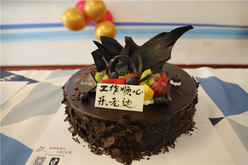 ▲黨委宣傳委員、工會主席、副總經(jīng)理、副校長王麗為壽星送禮物