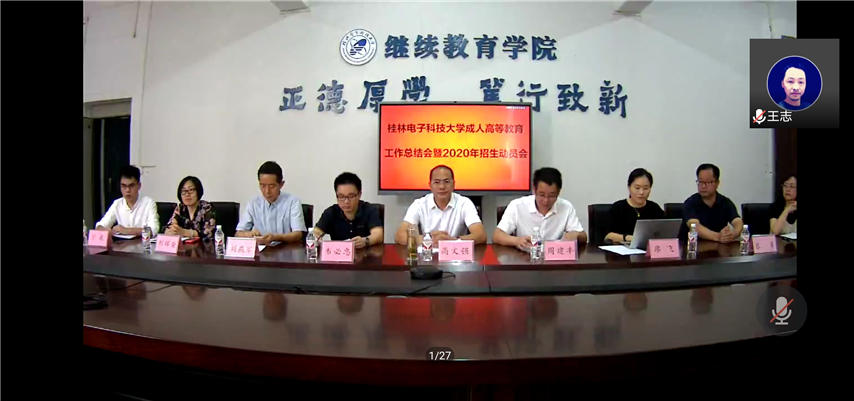 5月29日上午,桂林電子科技大學(xué)成人高等教育2019年工作總結(jié)暨2020年招生動(dòng)員會(huì)通過視頻召開,繼續(xù)教育學(xué)院院長(zhǎng)高文強(qiáng)、副院長(zhǎng)周建豐、韋必忠以及各科室領(lǐng)導(dǎo)老師和各站點(diǎn)分會(huì)場(chǎng)老師參加了會(huì)議,我函授站站長(zhǎng)蔣華、副站長(zhǎng)王志等領(lǐng)導(dǎo)參加了視頻會(huì)議。