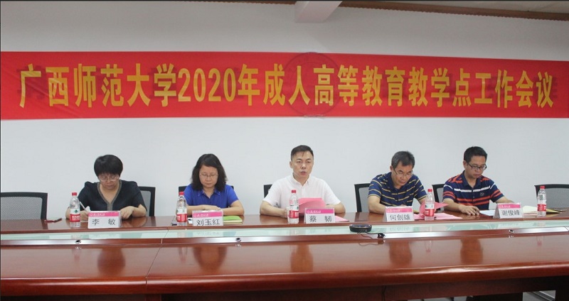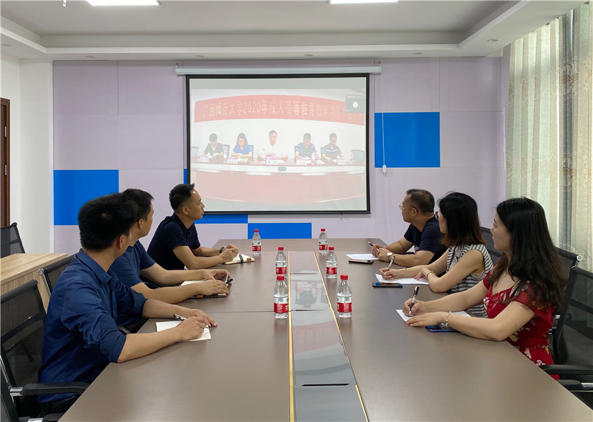 6月3日上午,廣西師范大學(xué)召開2020年成人高等教育教學(xué)點(diǎn)工作會(huì)議,會(huì)議以視頻會(huì)議形式召開,學(xué)校副校長(zhǎng)蔡韌、繼續(xù)教育學(xué)院院長(zhǎng)劉玉紅、招生辦和學(xué)歷部全體教職工、各成高教學(xué)點(diǎn)負(fù)責(zé)人共100余人參加了會(huì)議。我函授站站長(zhǎng)蔣華、副站長(zhǎng)王志等領(lǐng)導(dǎo)參加了視頻會(huì)議。