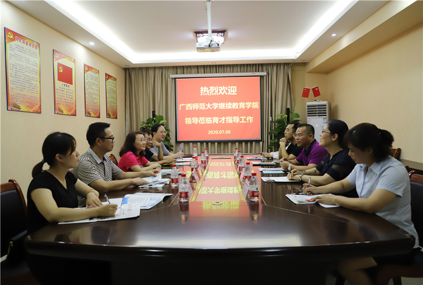 7月8日,廣西師范大學(xué)繼續(xù)教育學(xué)院院長、博士生導(dǎo)師劉玉紅教授、副院長何創(chuàng)雄、謝俊峰、學(xué)歷部主任蘇華一行5人蒞臨集團(tuán)柳州本部檢查指導(dǎo)工作,集團(tuán)黨委書記、董事長蔣華、黨委委員、副校長李彩梅、蔣亮、柳州運營部部長韋彥清、副部長莫新紅參加了座談會。