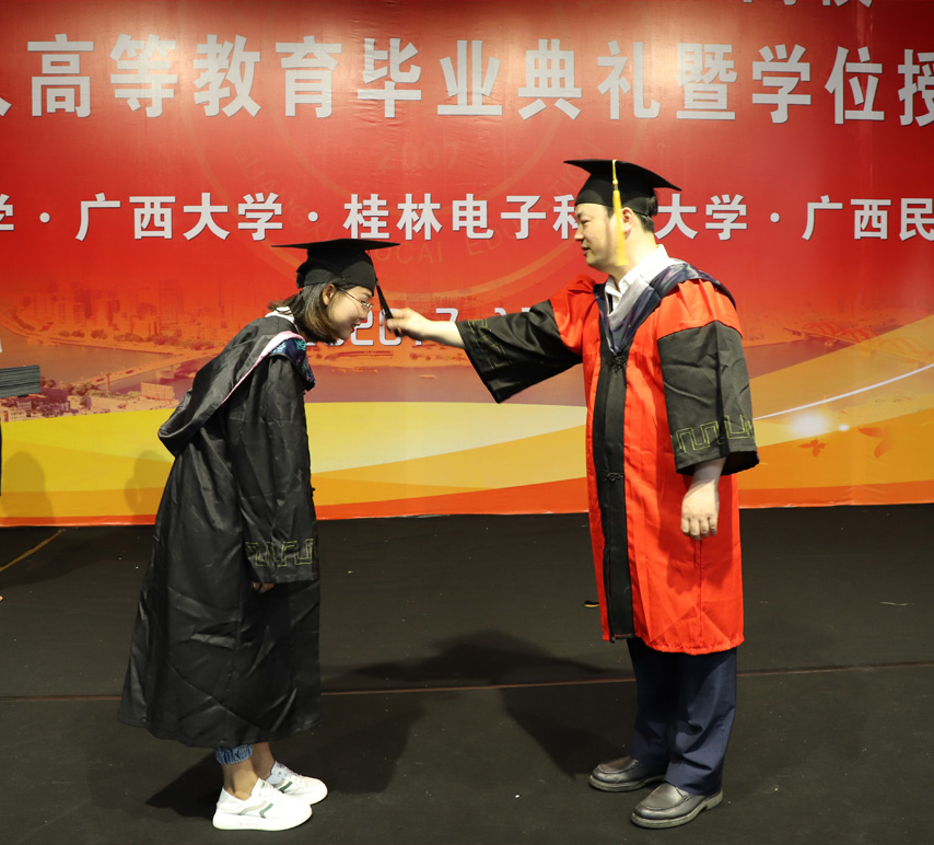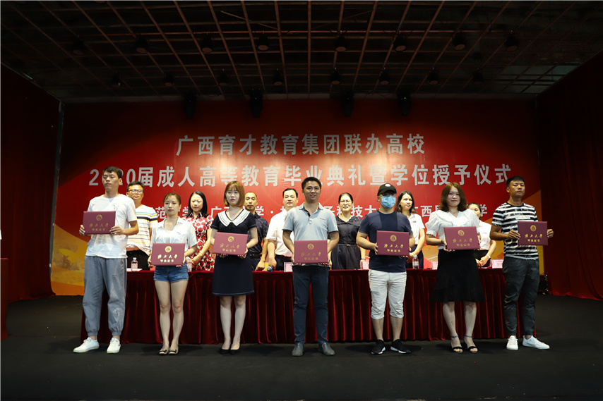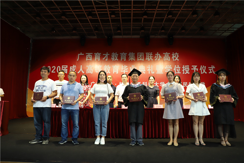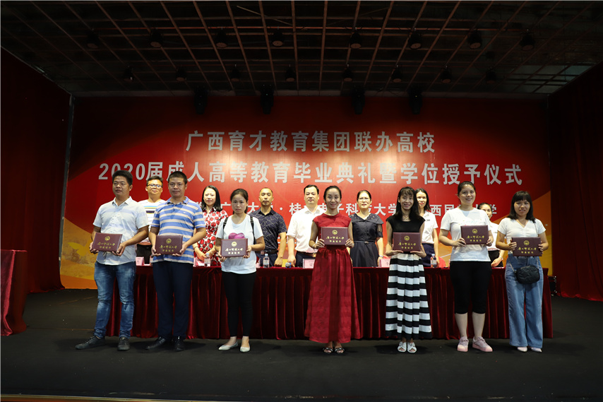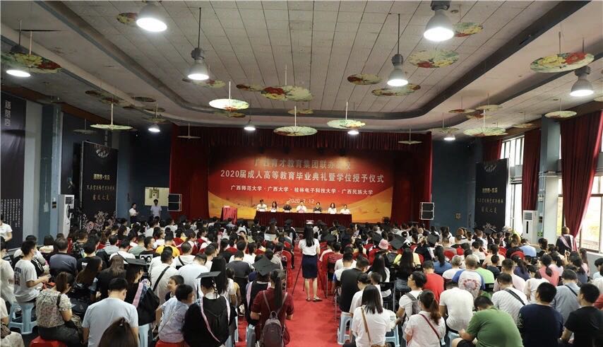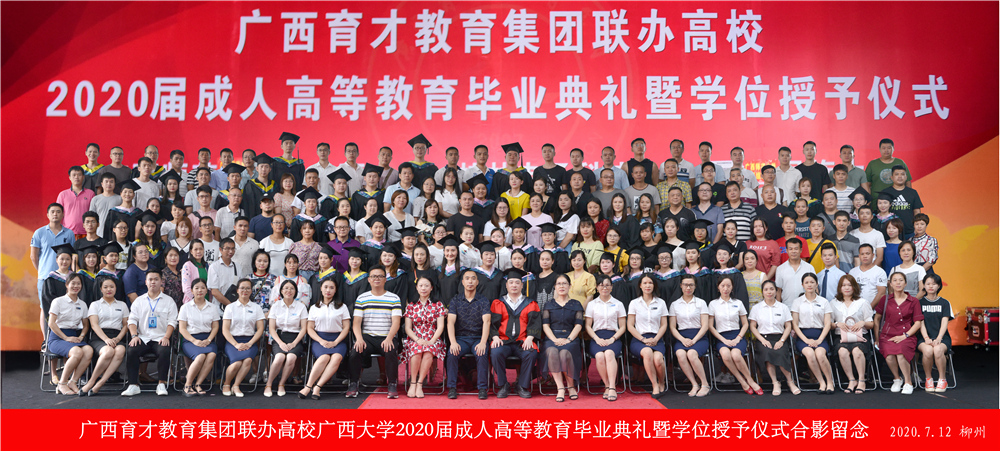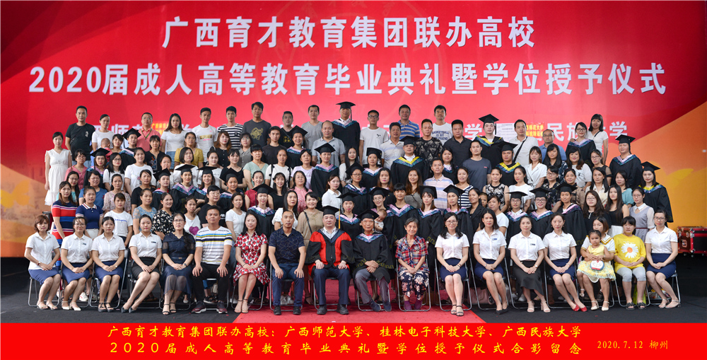 7月12日,集團(tuán)聯(lián)辦的廣西大學(xué)、廣西師范大學(xué)、桂林電子科技大學(xué)、廣西民族大學(xué)2020屆成人高等教育畢業(yè)生畢業(yè)典禮(柳州區(qū)域)暨學(xué)位授予儀式順利舉行。