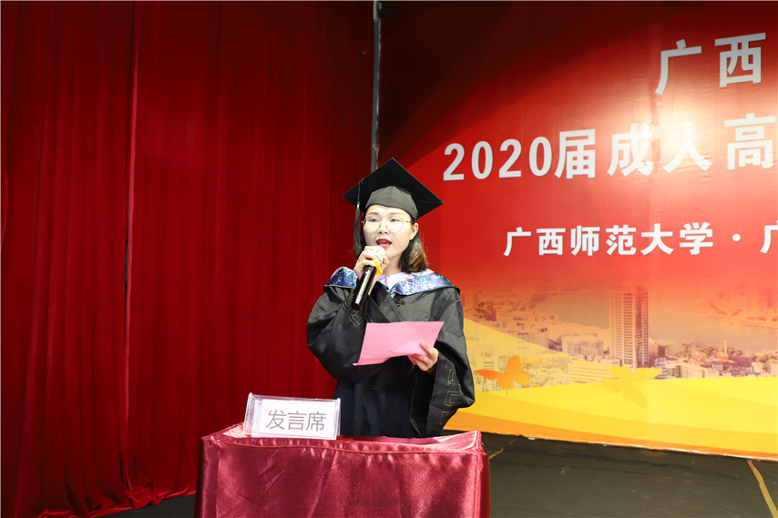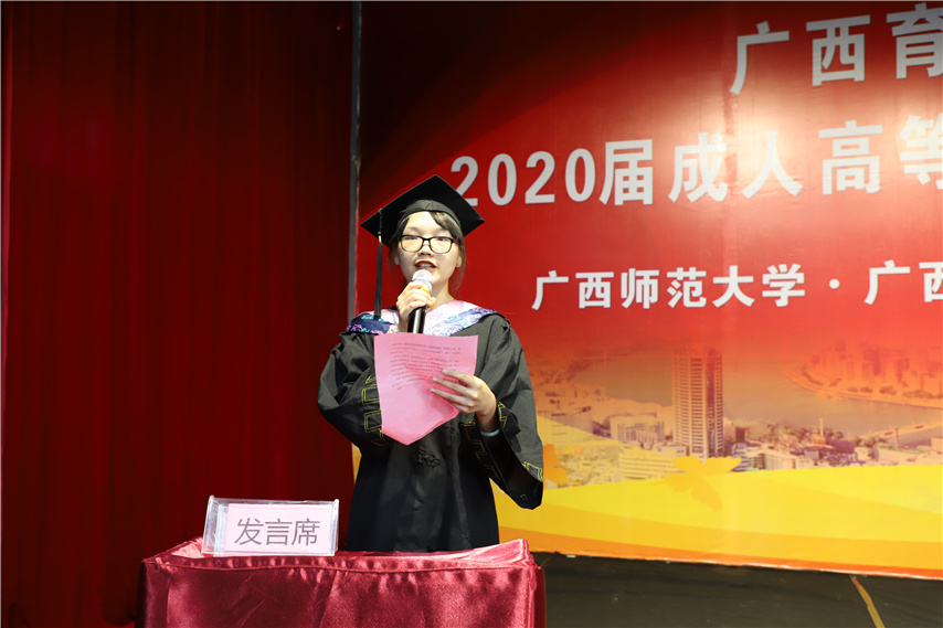 ▲2020屆廣西大學(xué)漢語(yǔ)言文學(xué)專業(yè)專升本的吳美霞同學(xué)作為畢業(yè)生代表發(fā)言