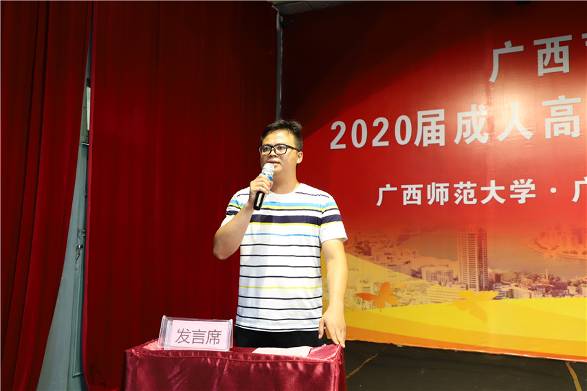 ▲2020屆廣西師范大學(xué)數(shù)學(xué)與應(yīng)用數(shù)學(xué)專業(yè)專升本的劉水英同學(xué)作為畢業(yè)生代表發(fā)言