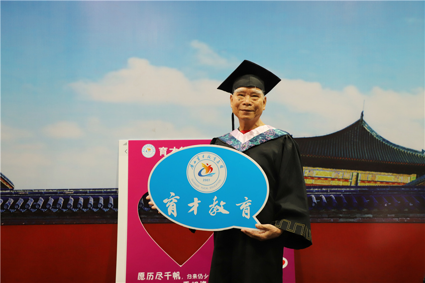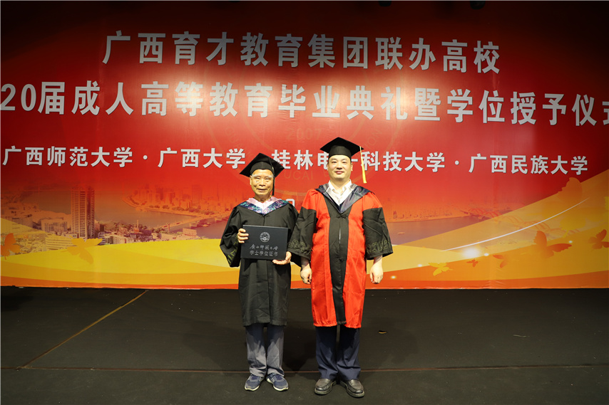 為了圓自己長(zhǎng)達(dá)半個(gè)世紀(jì)的大學(xué)夢(mèng),今年76歲高齡的阮學(xué)林老人,2014年通過(guò)成人高考考上廣西師范大學(xué)語(yǔ)文教育???,2017年7月完成學(xué)業(yè),順利獲得??飘厴I(yè)證,老人的夢(mèng)想應(yīng)當(dāng)已經(jīng)實(shí)現(xiàn),然而阮學(xué)林老人并沒有滿足,他的目標(biāo)是本科,畢業(yè)典禮上,他毫不猶豫的向育才的老師報(bào)讀了廣西師范大學(xué)的漢語(yǔ)言文學(xué)專業(yè)本科。