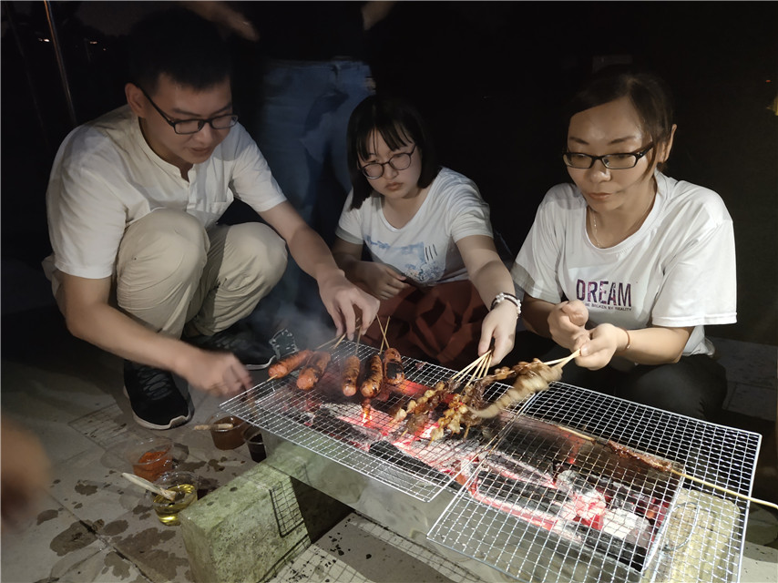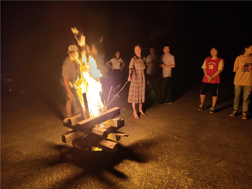隨著會議培訓(xùn)的結(jié)束,我們轉(zhuǎn)移到篝火晚會活動地點,通過軍訓(xùn)似的培訓(xùn),每一個人都迅速的進入了狀態(tài)。星星之火,照亮了整個夜晚。大家手拉著手唱歌、跳舞、燒烤。