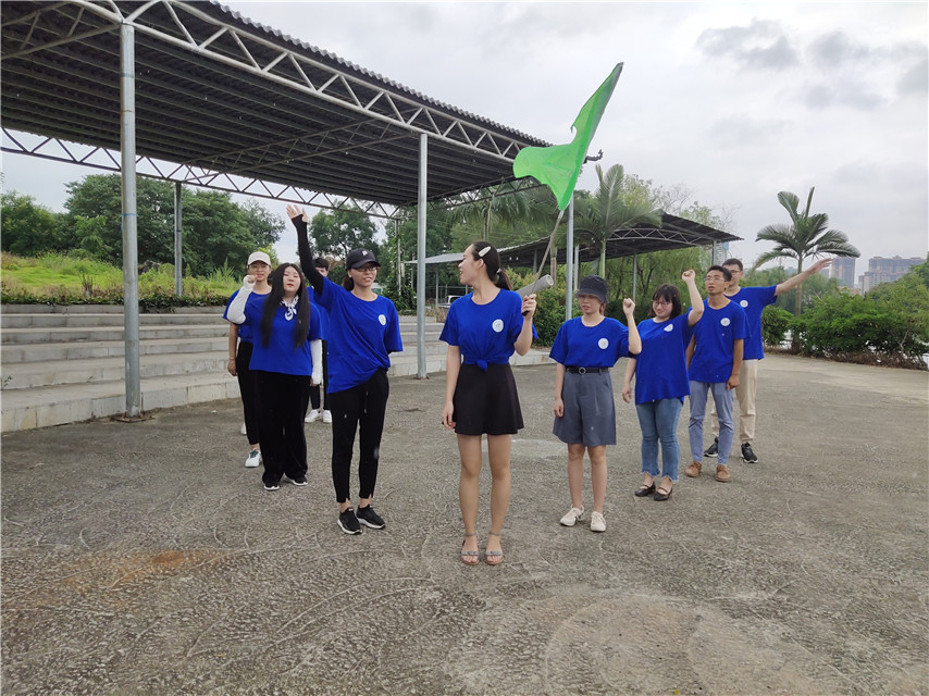 組隊,設(shè)隊長,授隊旗,整隊形,唱隊歌,開始一天的拓展訓(xùn)練。