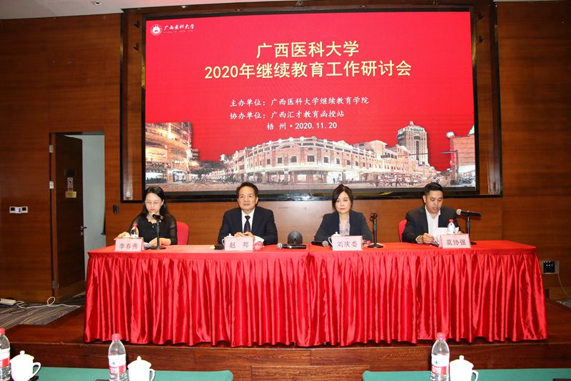 11月20日,廣西醫(yī)科大學(xué)2020年繼續(xù)教育工作研討會(huì)在梧州市順利召開(kāi),繼續(xù)教育學(xué)院院長(zhǎng)趙邦教授、副院長(zhǎng)劉慶委、李春燕以及各科室老師、函授站代表共100余人參加了會(huì)議。會(huì)議由劉慶委副院長(zhǎng)主持。