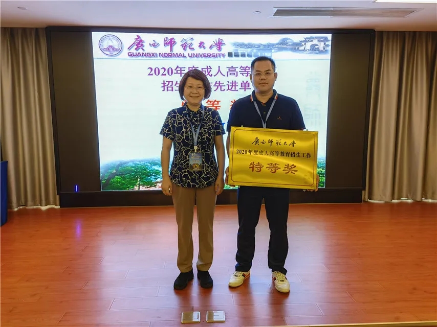 會(huì)議表彰了2020年度成人高等教育招生工作先進(jìn)單位,因工作出色,我函授站榮獲廣西師范大學(xué)2020年度成人高等教育招生工作“特等獎(jiǎng)”,這是集團(tuán)與廣西師范大學(xué)合作辦學(xué)以來(lái),第10次榮獲廣西師范大學(xué)成人高等教育招生工作“特等獎(jiǎng)”。