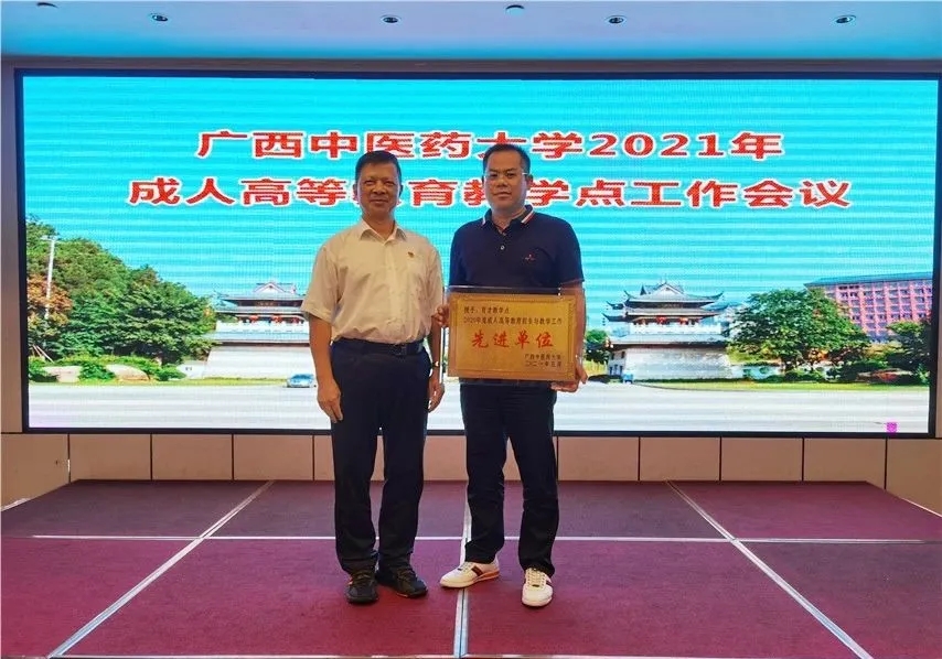 會(huì)上,成教院領(lǐng)導(dǎo)班子對(duì)榮獲2020年度招生與教學(xué)工作先進(jìn)單位的教學(xué)點(diǎn)頒發(fā)獎(jiǎng)牌。因工作出色,我教學(xué)點(diǎn)榮獲廣西中醫(yī)藥大學(xué)2020年度成人高等教育招生與教學(xué)工作“先進(jìn)單位”。