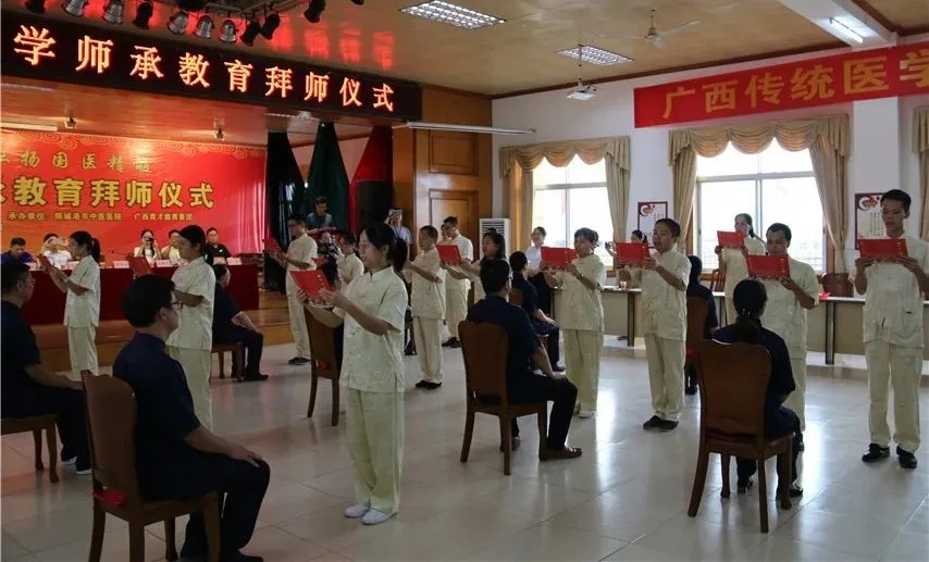 ▲中醫(yī)師承班(北海市中醫(yī)醫(yī)院拜師儀式)