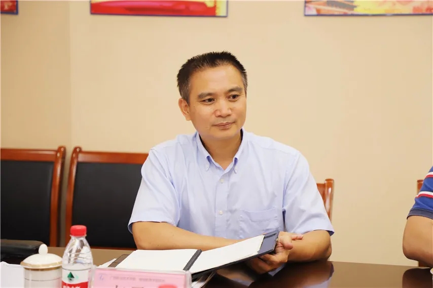 ▲廣西職業(yè)技術(shù)學(xué)院教務(wù)處處長李繼宏座談交流