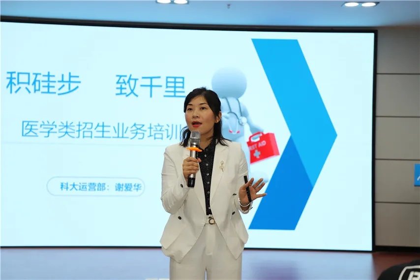 科大運(yùn)營(yíng)部副部長(zhǎng)謝愛華作醫(yī)學(xué)類招生業(yè)務(wù)培訓(xùn)。