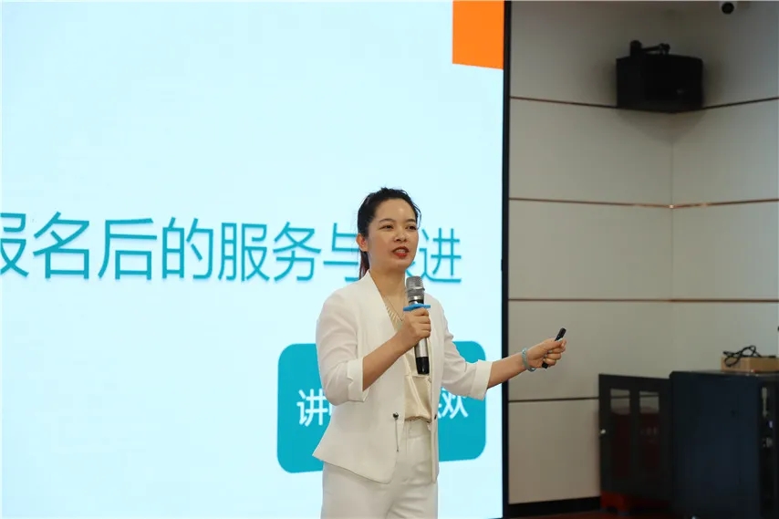 桂林運(yùn)營(yíng)部副部長(zhǎng)韋洪歡作《報(bào)名后服務(wù)與跟進(jìn)》授課。