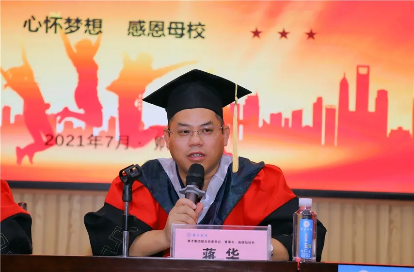 ▲集團(tuán)黨委書記蔣華代表育才全體老師對劉玉紅院長一行百忙之中抽空參加畢業(yè)典禮表示熱烈的歡迎,對我函授站2021屆1396名畢業(yè)生順利畢業(yè)表示衷心的祝賀。他說,立足中國共產(chǎn)黨百年華誕的重大時刻和“兩個一百年”歷史交匯的關(guān)鍵節(jié)點(diǎn),今天的畢業(yè)典禮意義非凡厚重,他希望同學(xué)們能學(xué)以致用,畢業(yè)后保持聯(lián)系,勉勵??飘厴I(yè)的同學(xué)繼續(xù)報讀本科,本科畢業(yè)的繼續(xù)報讀研究生,活到老,學(xué)到老。