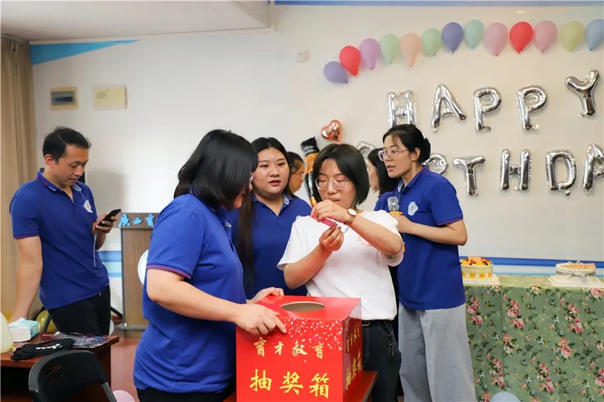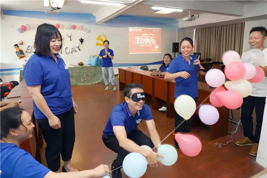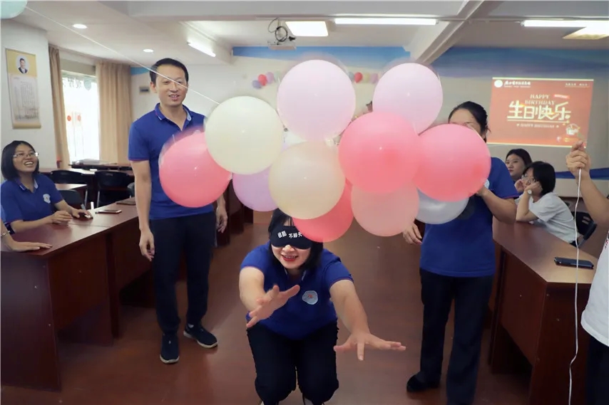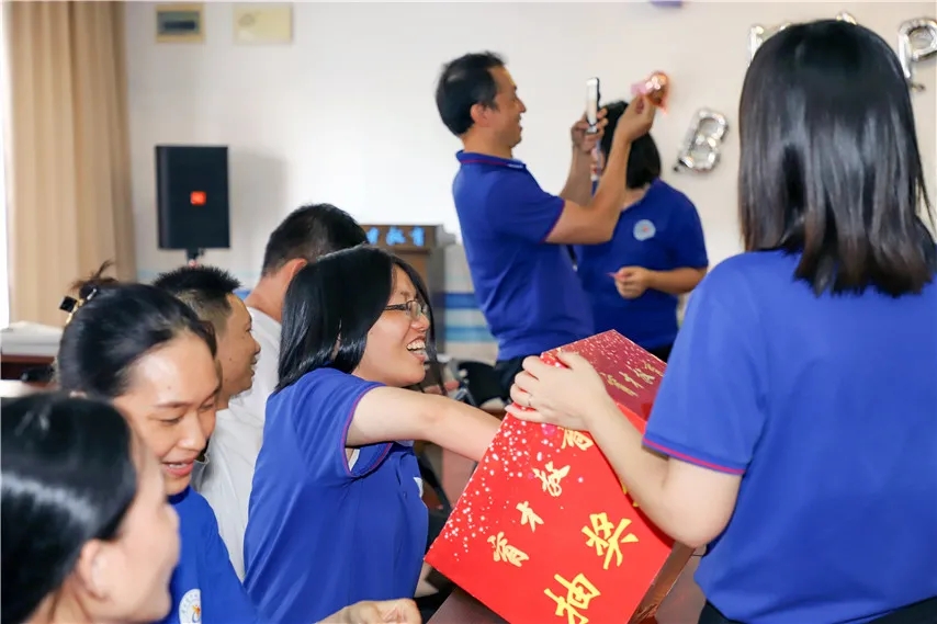 活動以集體生日會和趣味游戲的形式進行,游戲活動包括兩個環(huán)節(jié):滿載而歸和正話反說。前者主要注重教職工的參與及團隊協(xié)作,后者注重考驗個人的靈活性與積極性。通過游戲排名,優(yōu)先抽取精美禮物,加油,壽星們!