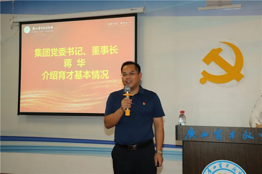 集團(tuán)黨委書記、董事長(zhǎng)蔣華致詞,他代表育才全體老師向各位專家表示熱烈的歡迎和衷心的感謝。在“十四五”規(guī)劃中,集團(tuán)繼續(xù)推動(dòng)學(xué)歷教育高質(zhì)量發(fā)展,在教育供給側(cè)服務(wù)上不斷深挖,在學(xué)歷繼續(xù)教育服務(wù)平臺(tái)的基礎(chǔ)上,不斷轉(zhuǎn)型以非學(xué)歷教育培訓(xùn)為主。期待可以更好地發(fā)揮基地校辦學(xué)特色和課程專家教育正能量的輻射作用,促進(jìn)城鄉(xiāng)教育事業(yè)優(yōu)化發(fā)展,大力助推鄉(xiāng)村振興事業(yè)發(fā)展。希望大家真誠(chéng)合作,“賡續(xù)百年初心、擔(dān)當(dāng)育人使命”,做到以德立身、以德立學(xué)、以德施教,努力做教育改革的奮進(jìn)者、人才振興的先行者、學(xué)生成長(zhǎng)的引導(dǎo)者,為柳州和廣西地區(qū)的教育事業(yè)發(fā)展繼續(xù)作出自己的貢獻(xiàn)。