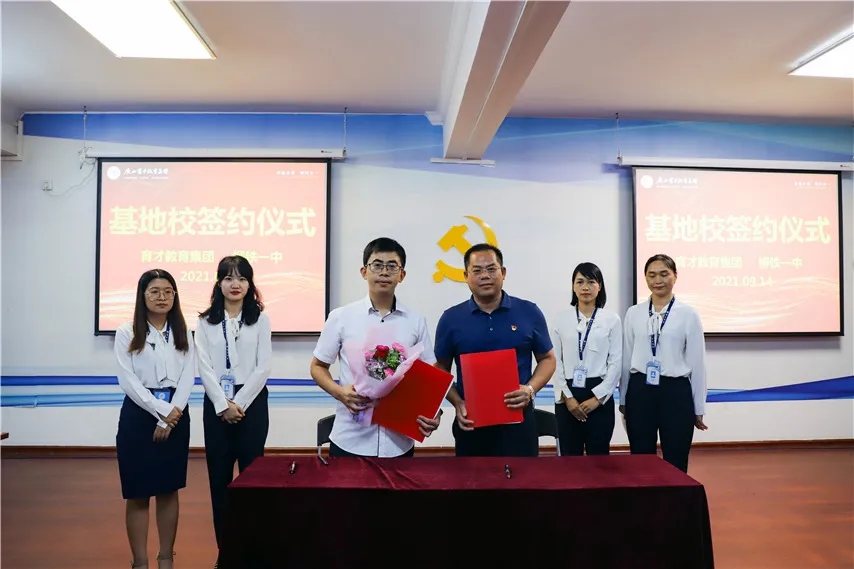 ▲集團(tuán)與柳鐵一中(代表高中學(xué)段)舉行基地校簽約儀式