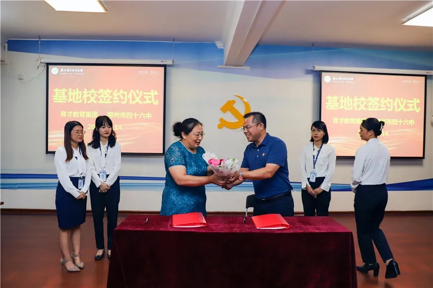 ▲集團(tuán)與柳州市四十六中(代表初中學(xué)段)舉行基地校簽約儀式