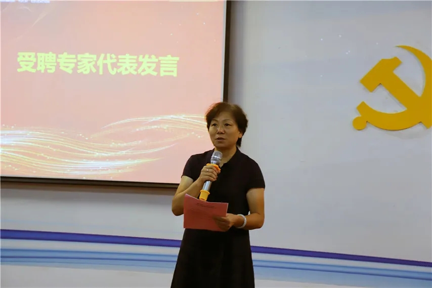 ▲來自南寧市的退休正高級(jí)教師展秀婷老師代表代表受聘專家講話,她表示要很好的履行職責(zé),把工作做好,不斷學(xué)習(xí)提高,適應(yīng)課程專家的要求。