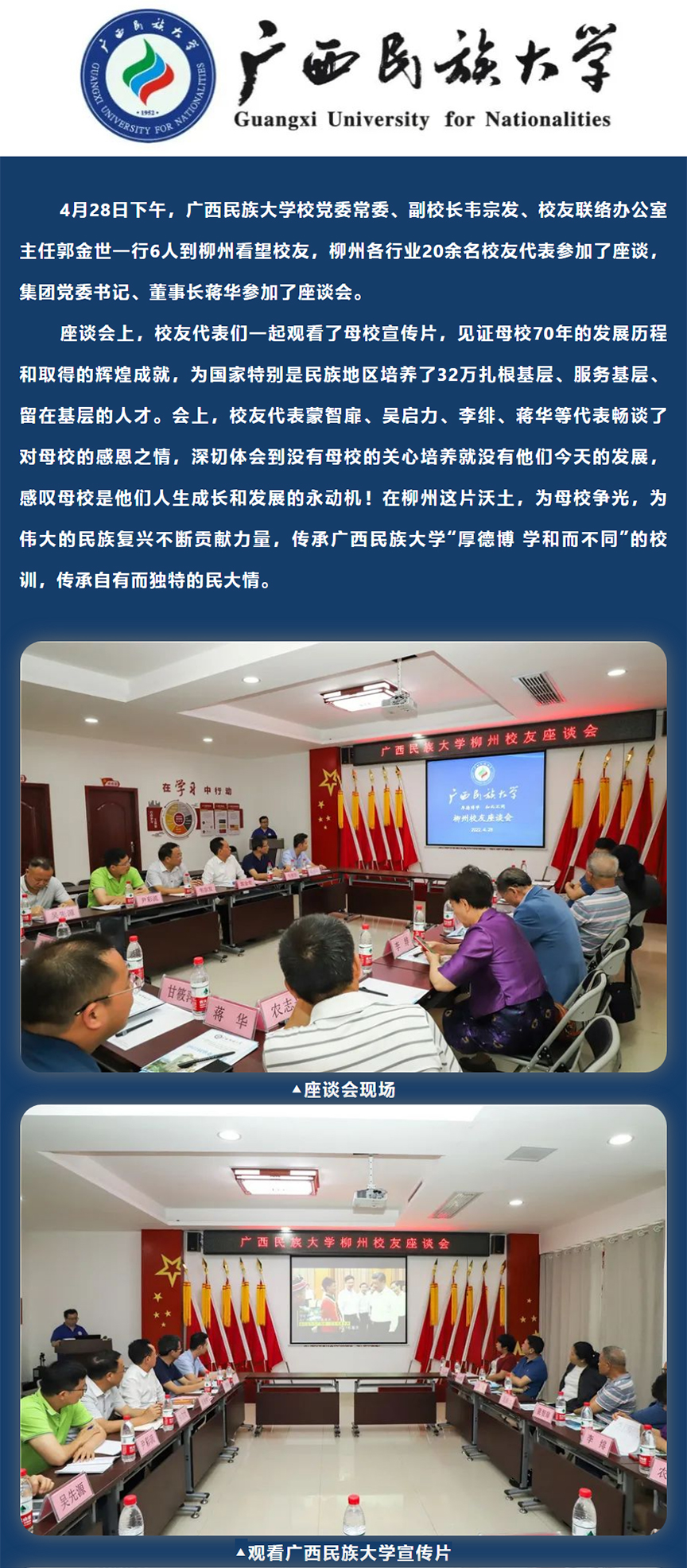 廣西民族大學(xué)領(lǐng)導(dǎo)看望柳州校友并蒞臨集團(tuán)指導(dǎo)工作