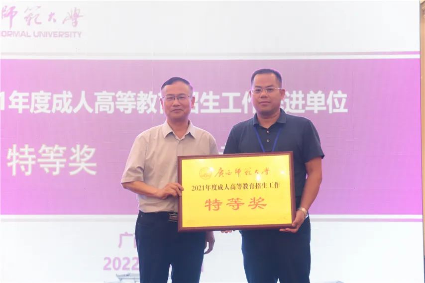 會(huì)議表彰了2021年度成人高等教育招生工作先進(jìn)單位,因工作出色,我教學(xué)點(diǎn)榮獲廣西師范大學(xué)2021年度成人高等教育招生工作“特等獎(jiǎng)”,這是集團(tuán)與廣西師范大學(xué)合作辦學(xué)以來,第12次榮獲廣西師范大學(xué)成人高等教育招生工作“特等獎(jiǎng)”。2020年還榮獲廣西師范大學(xué)中國高校繼續(xù)教育優(yōu)秀函授站。