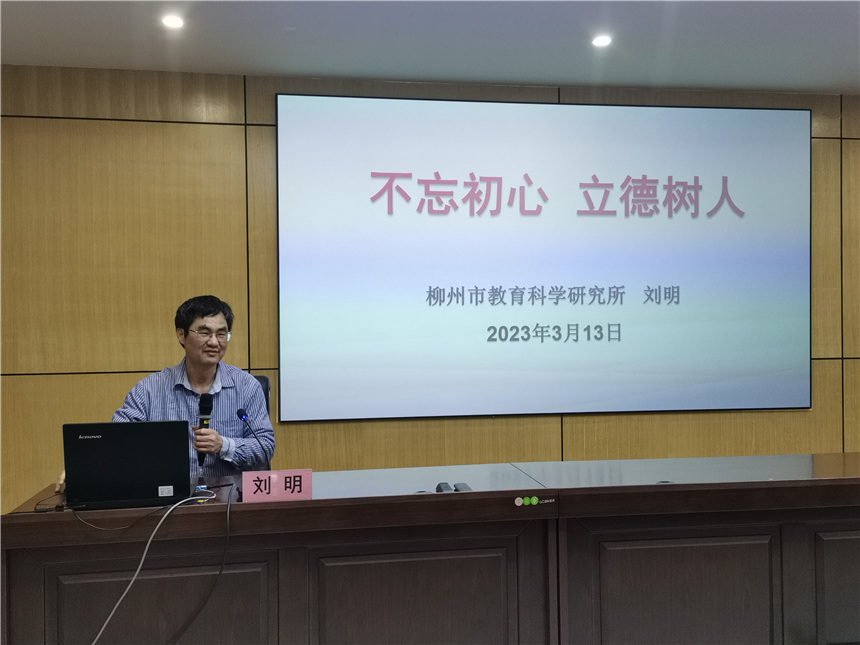▲柳州市教育科學(xué)研究所原所長兼書記劉明為學(xué)員授課