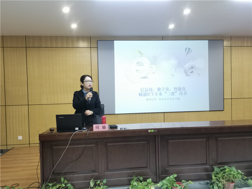 ▲柳州市教育局職業(yè)教育與成人教育科副科長佘瑩作動員講話