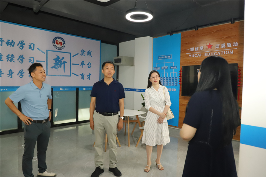 6月28日,南寧師范大學(xué)繼續(xù)教育學(xué)院院長(zhǎng)徐健,副院長(zhǎng)葉郁,成高中心主任伍應(yīng)樹一行3人蒞臨集團(tuán)柳州本部檢查指導(dǎo),集團(tuán)黨委副書記、副校長(zhǎng)王志,黨委委員、副校長(zhǎng)李彩梅,蔣亮陪同并參加了座談會(huì)。