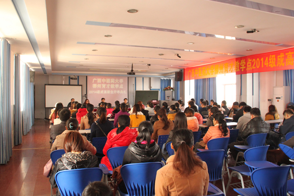 廣西大學(xué)成教院覃健強副院長在育才柳州總部新生開學(xué)典禮上講話