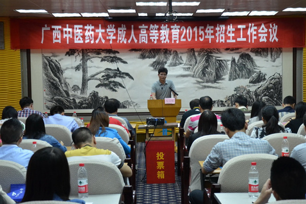4月17日,廣西中醫(yī)藥大學(xué)在柳州召開成人高等教育2015年會,由育才教育承辦。學(xué)校羅偉生副校長出席會議,會議由成人教育學(xué)院韋艾凌院長主持。學(xué)校直屬黨委蔣林書記、覃振林副書記、韋瑞誠副院長和成教學(xué)院全體人員及各教學(xué)點(diǎn)負(fù)責(zé)人、招生專職人員60余人參加了會議。